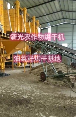 在新光糧食烘干機用戶的油菜籽烘干機基地。寬敞場地上,多臺油菜籽烘干機整齊排列,快速運轉。